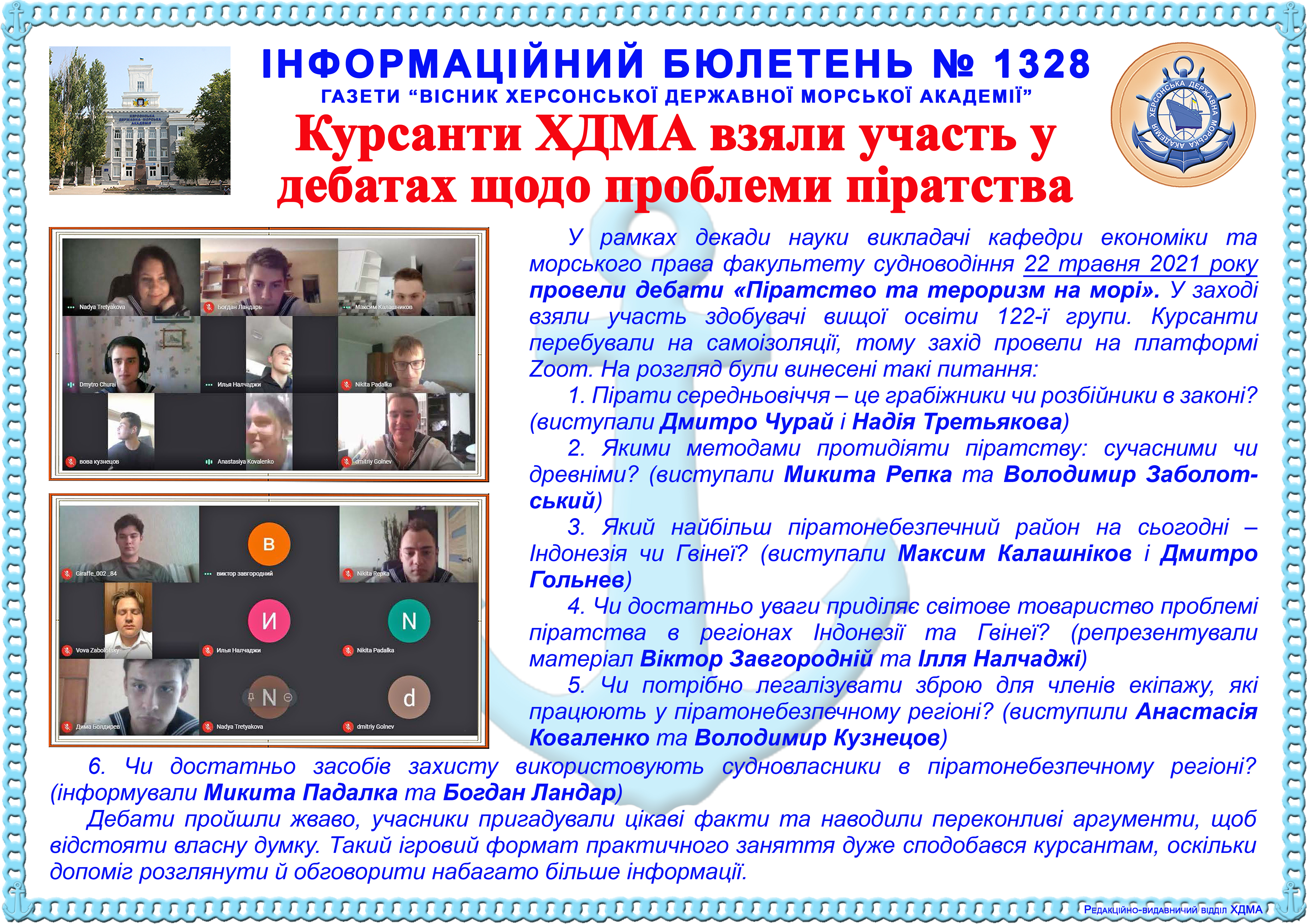 Інформаційний бюлетень № 1328 Курсанти ХДМА взяли участь у дебатах щодо проблеми піратства
