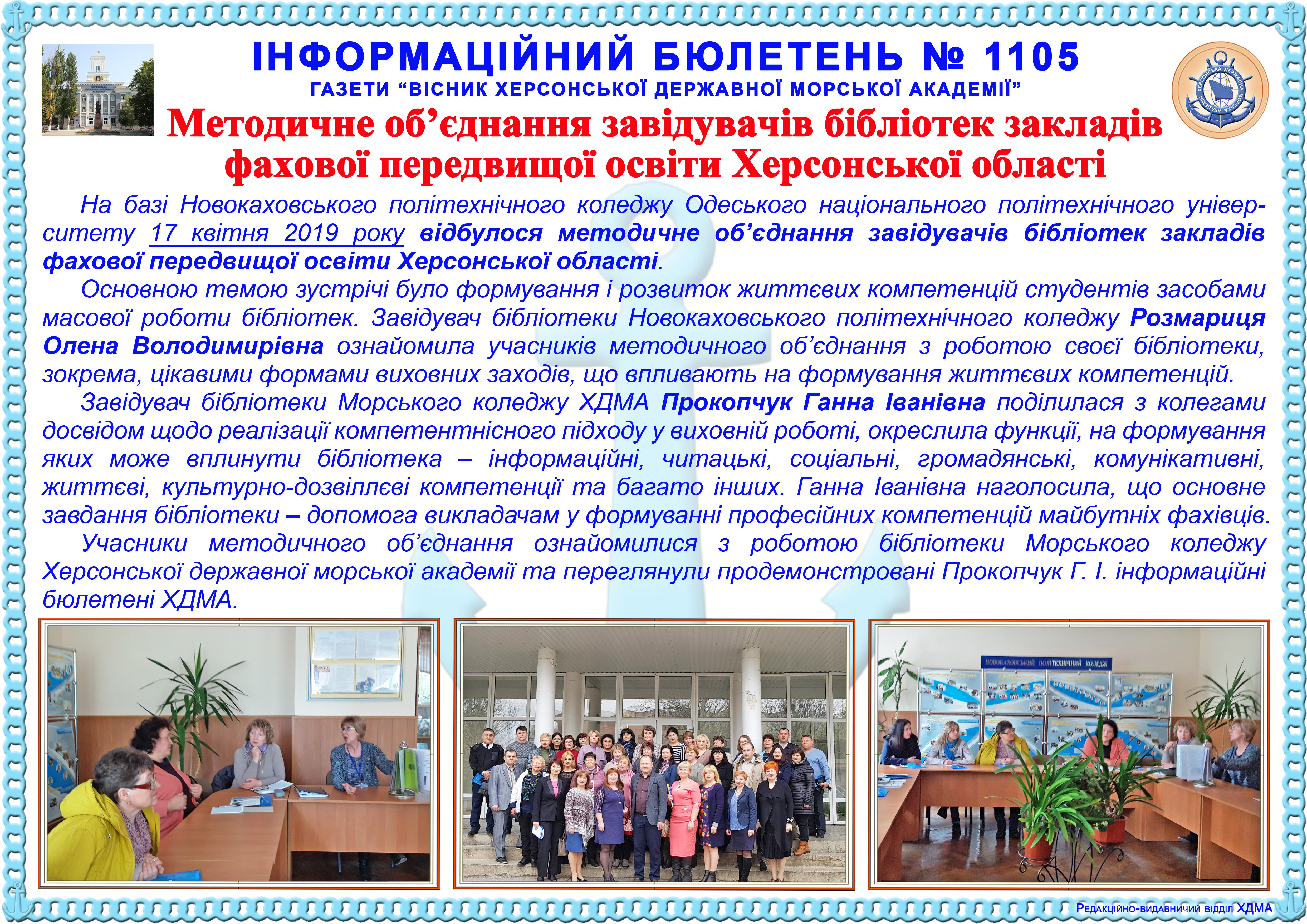 Інформаційний бюлетень № 1105 Методичне об’єднання завідувачів бібліотек закладів фахової передвищої освіти Херсонської області