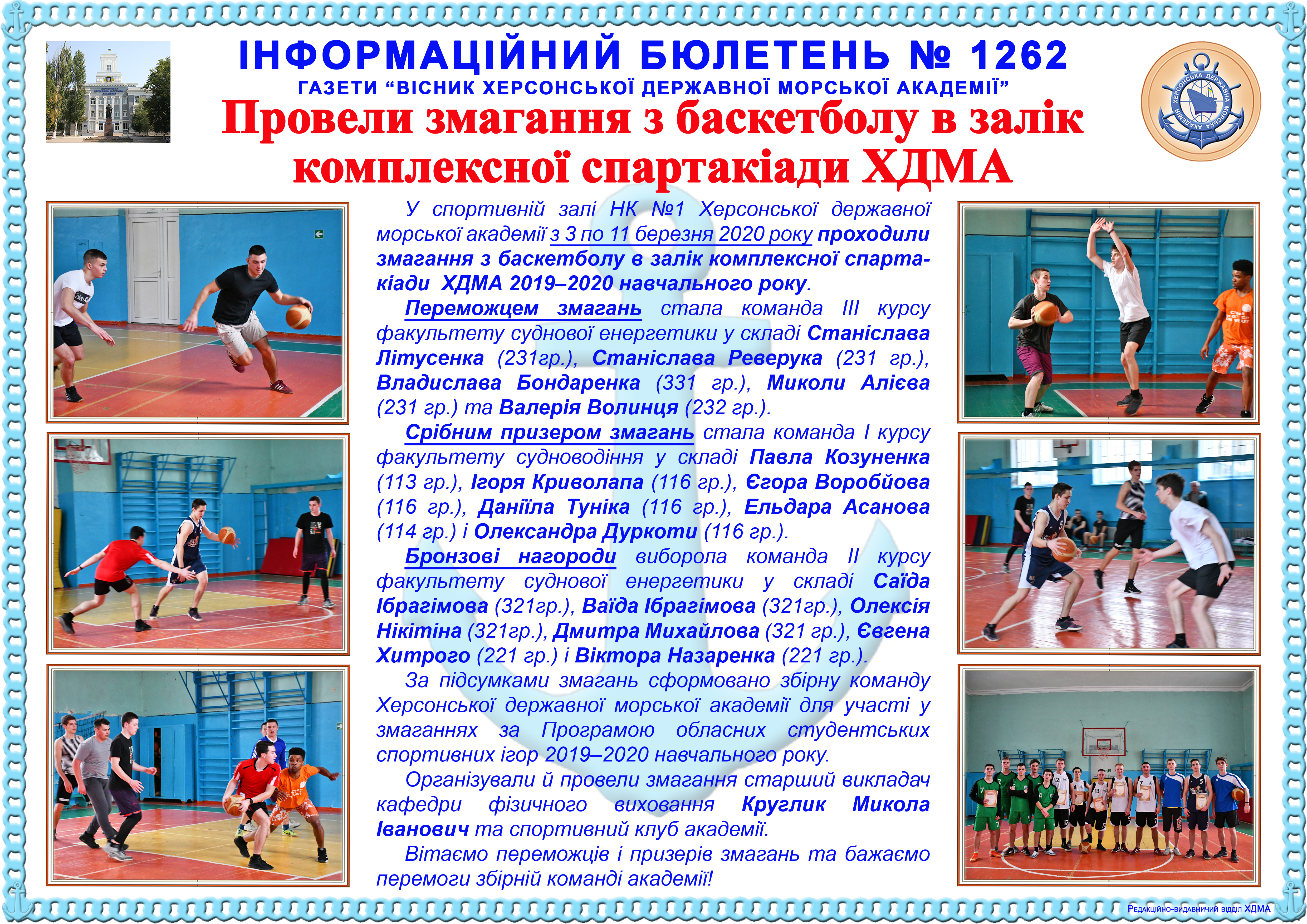 Інформаційний бюлетень № 1262 Провели змагання з баскетболу в залік комплексної спартакіади ХДМА