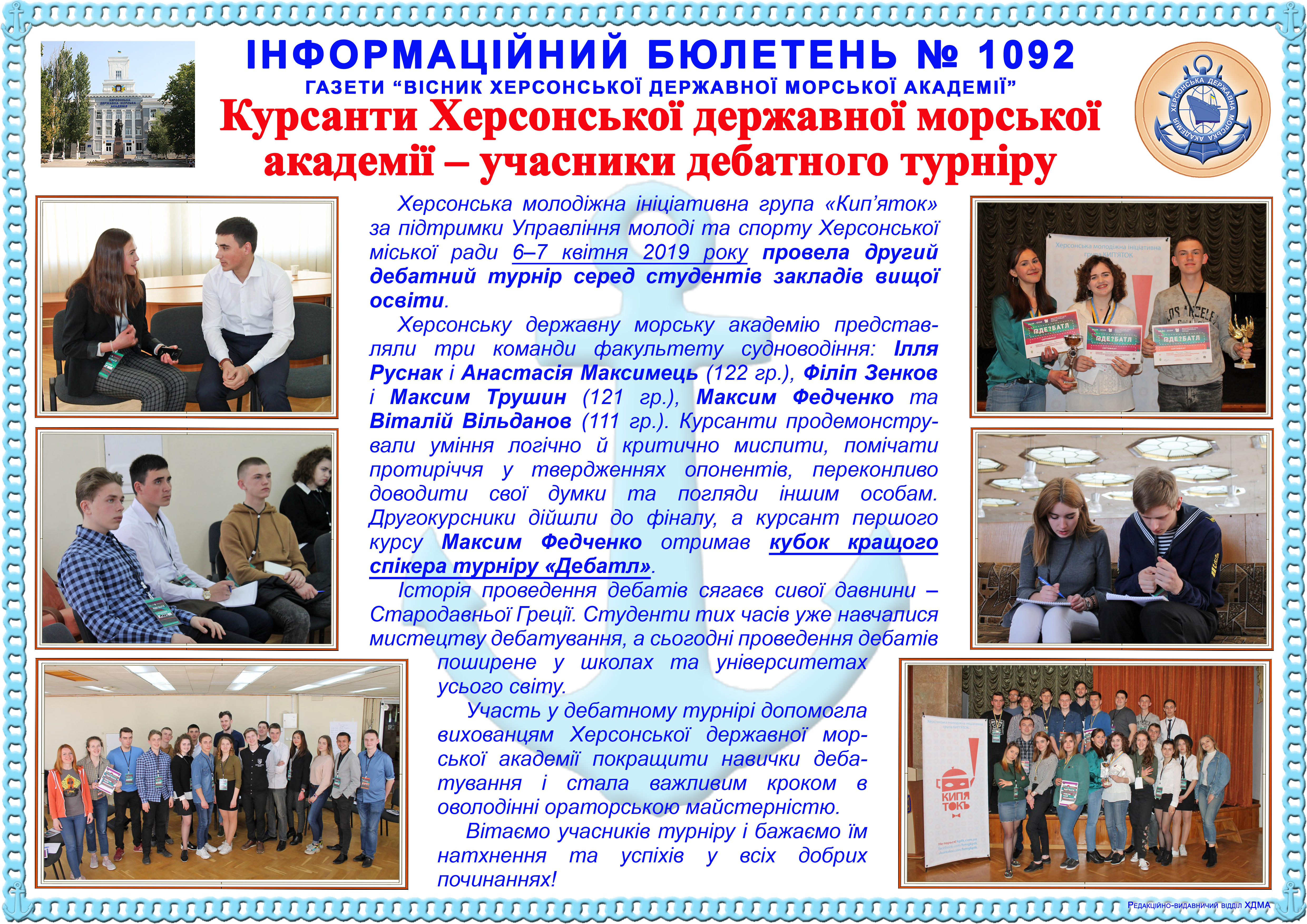 Інформаційний бюлетень № 1092 Курсанти Херсонської державної морської академії – учасники дебатного турніру