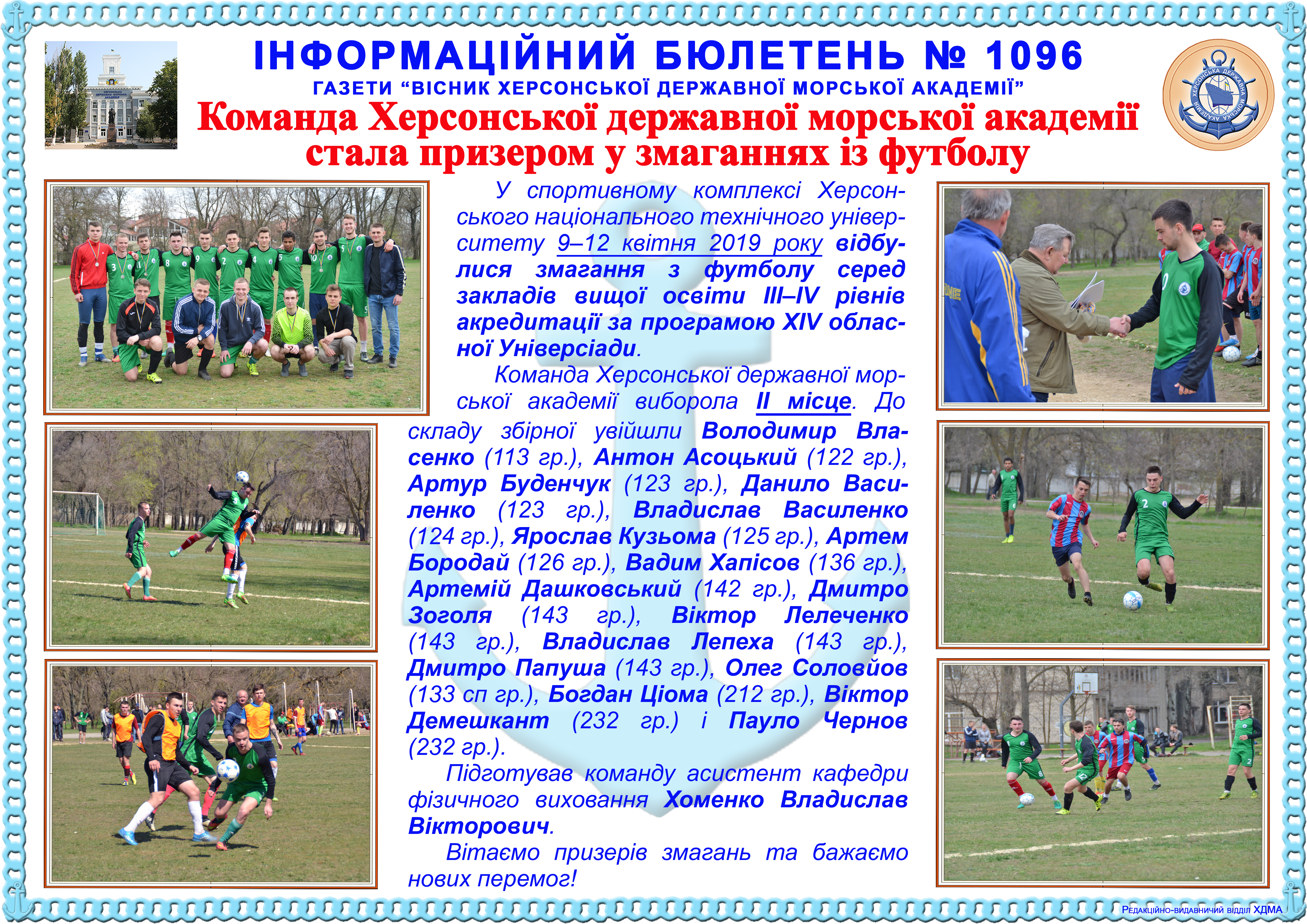 Інформаційний бюлетень № 1096 Команда Херсонської державної морської академії стала призером у змаганнях з футболу