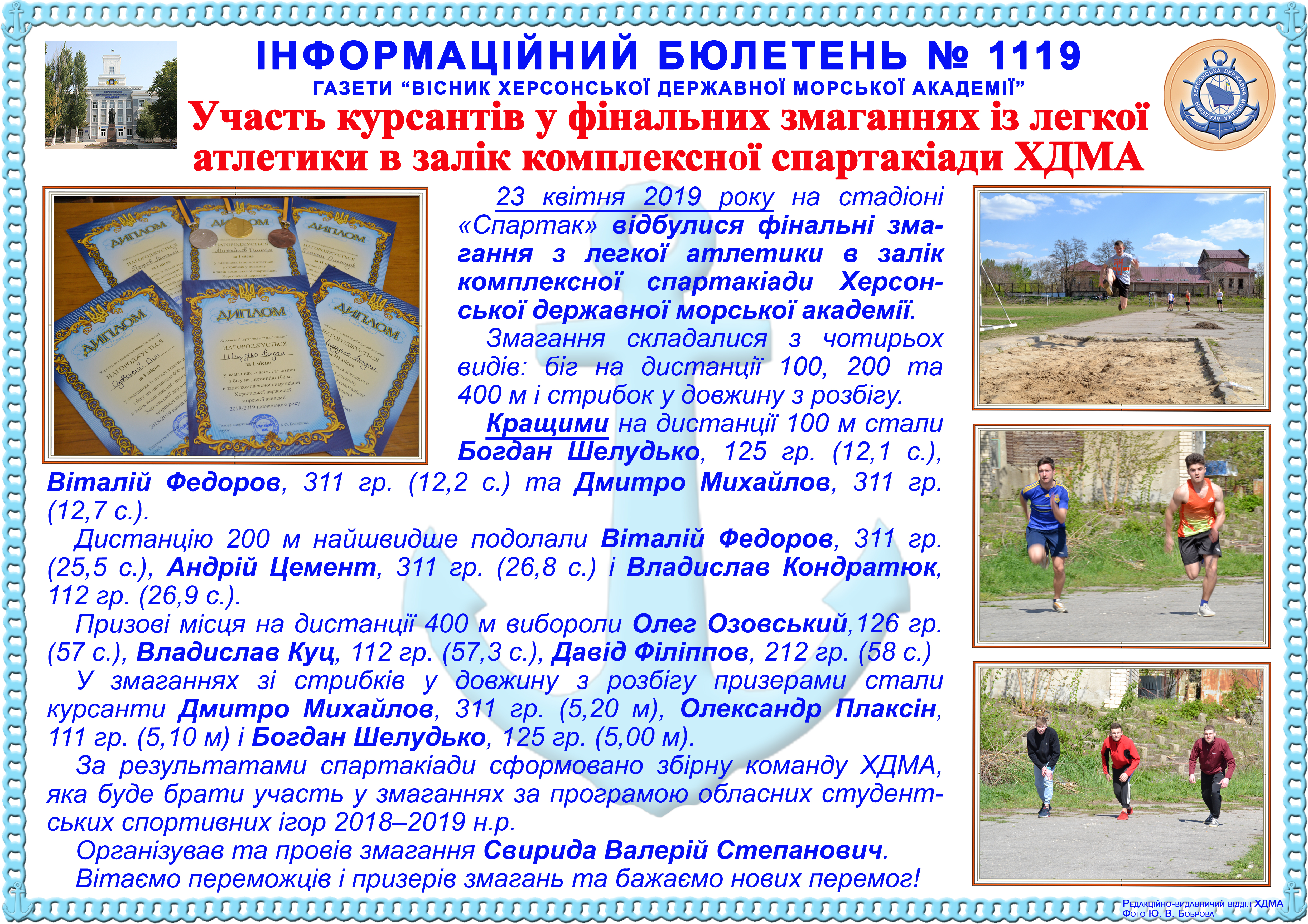 Інформаційний бюлетень № 1119 Участь курсантів у фінальних змаганнях із легкої атлетики в залік комплексної спартакіади ХДМА