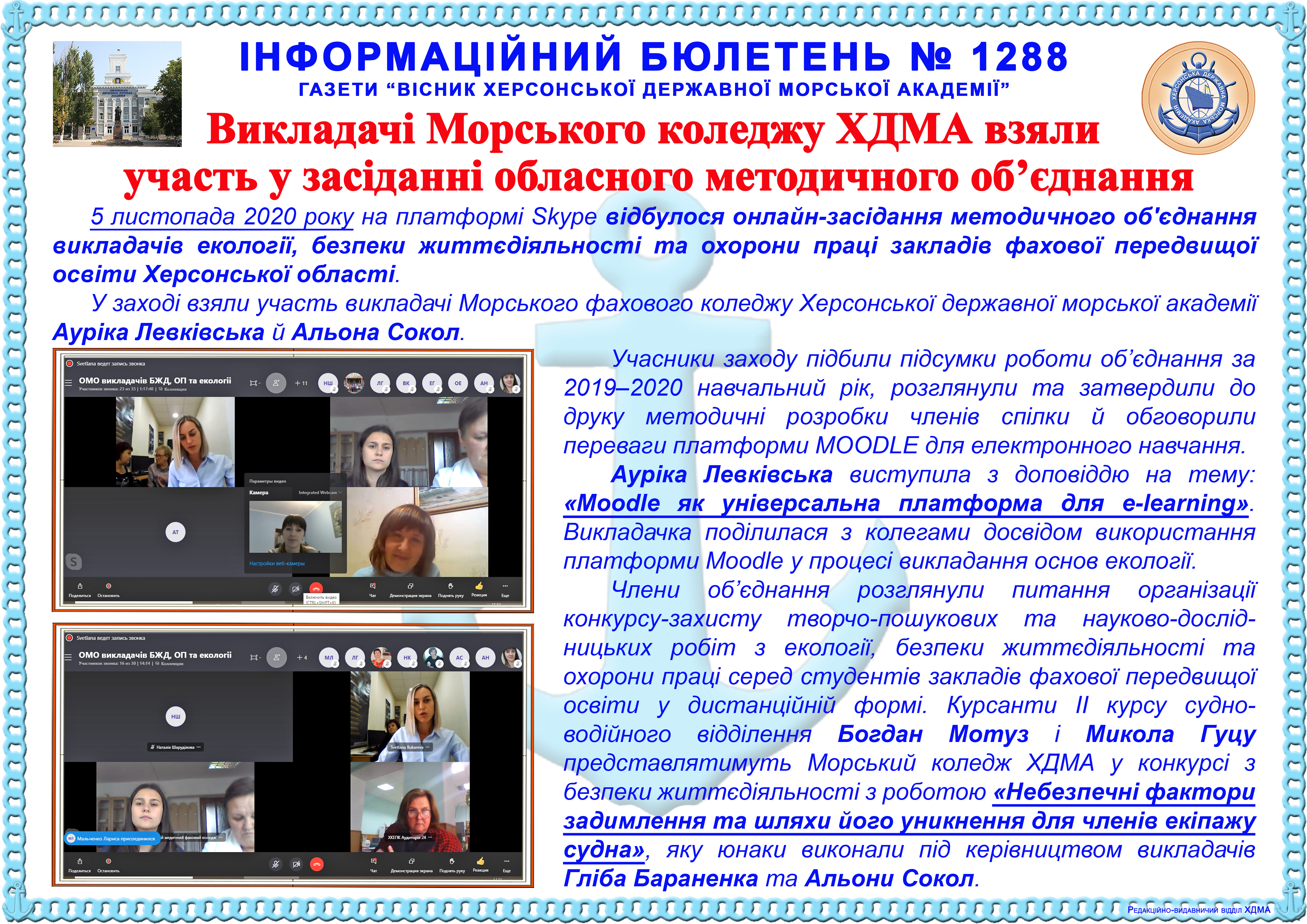 Інформаційний бюлетень № 1288 Викладачі Морського коледжу ХДМА взяли участь у засіданні обласного методичного об’єднання