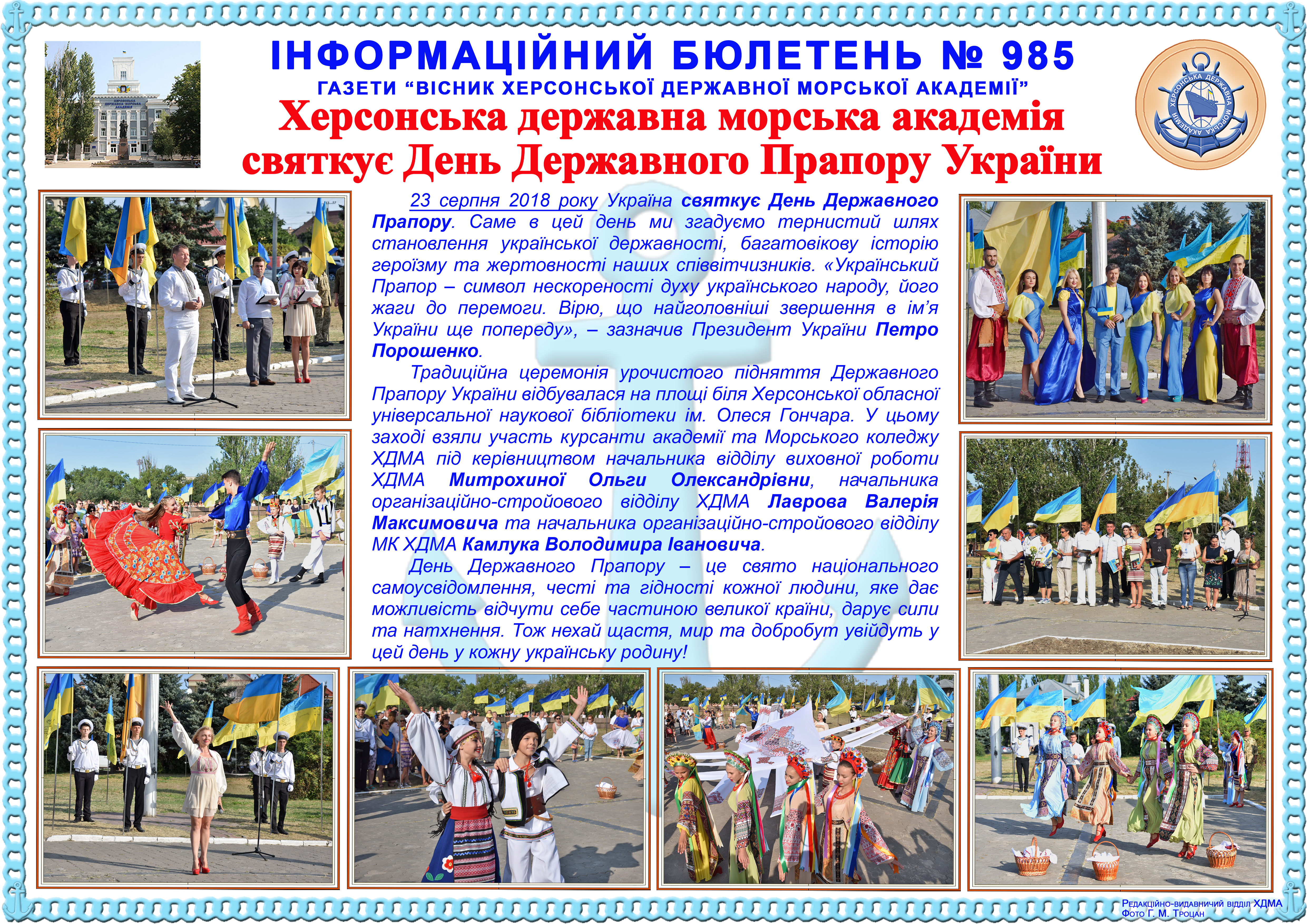 Інформаційний бюлетень № 985 Херсонська державна морська академія святкує День Державного Прапору України