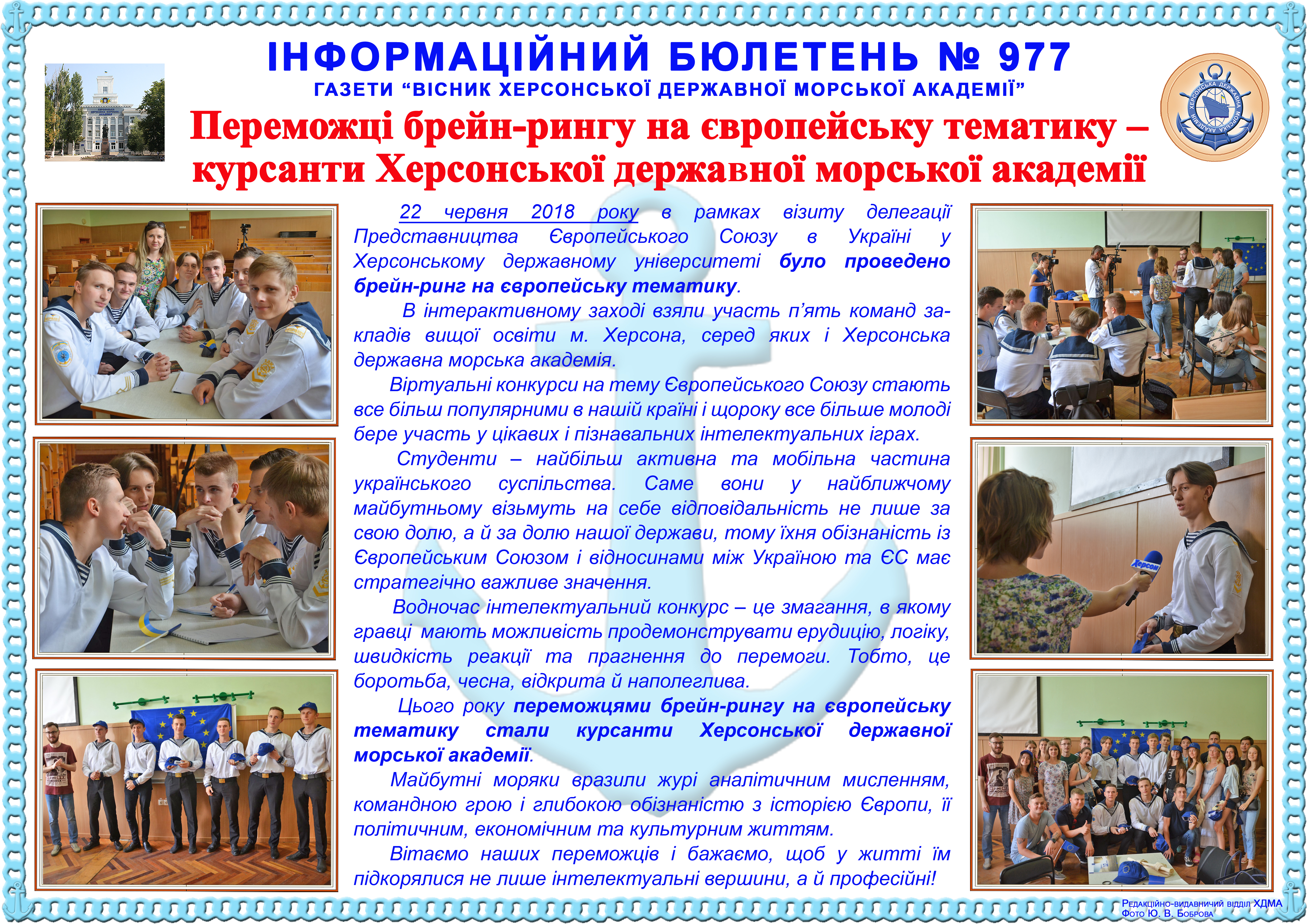 Інформаційний бюлетень № 977 Переможці брейн-рингу на європейську тематику – курсанти Херсонської державної морської академії
