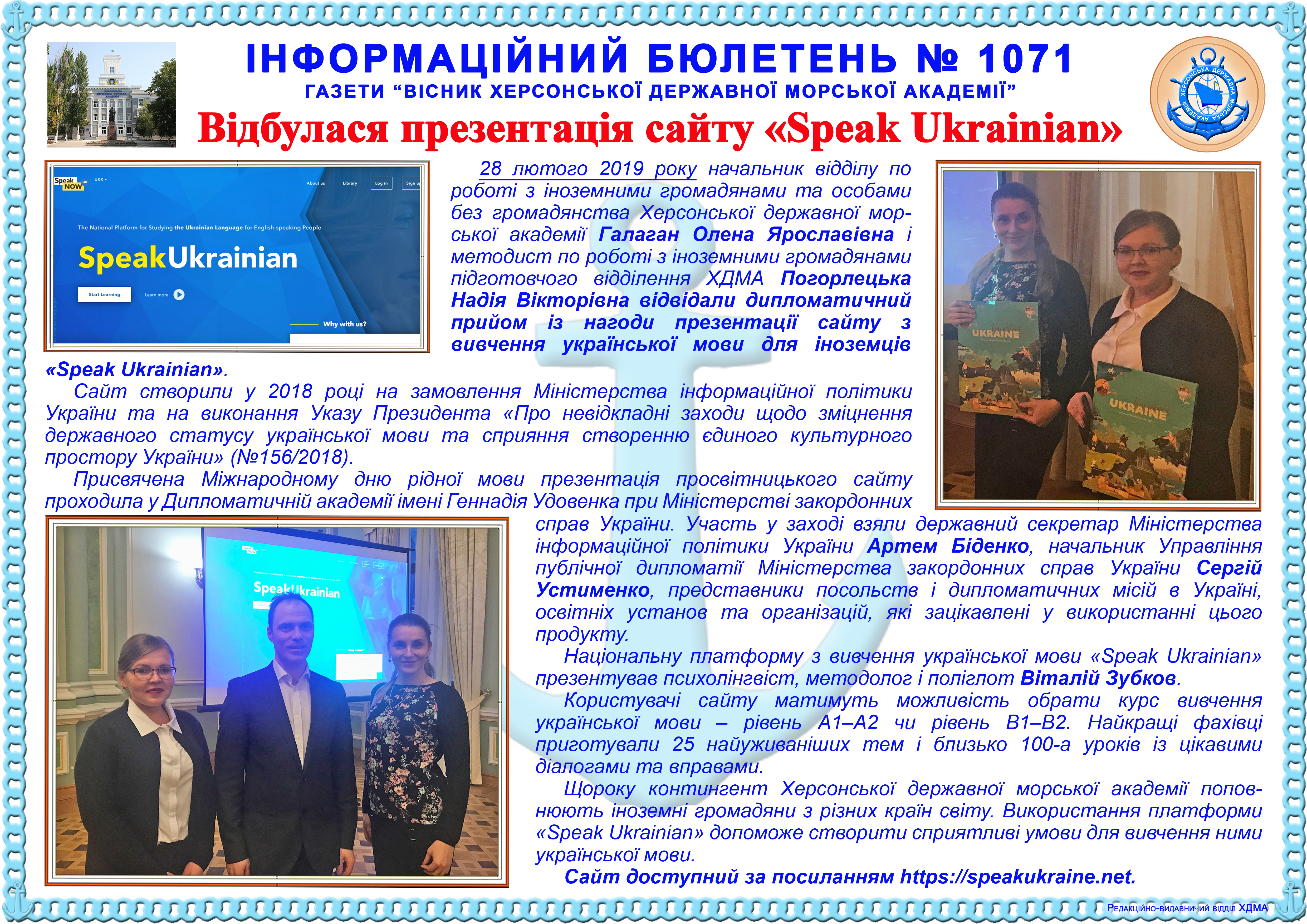 Інформаційний бюлетень № 1071 Відбулася презентація сайту «Speak Ukrainian»