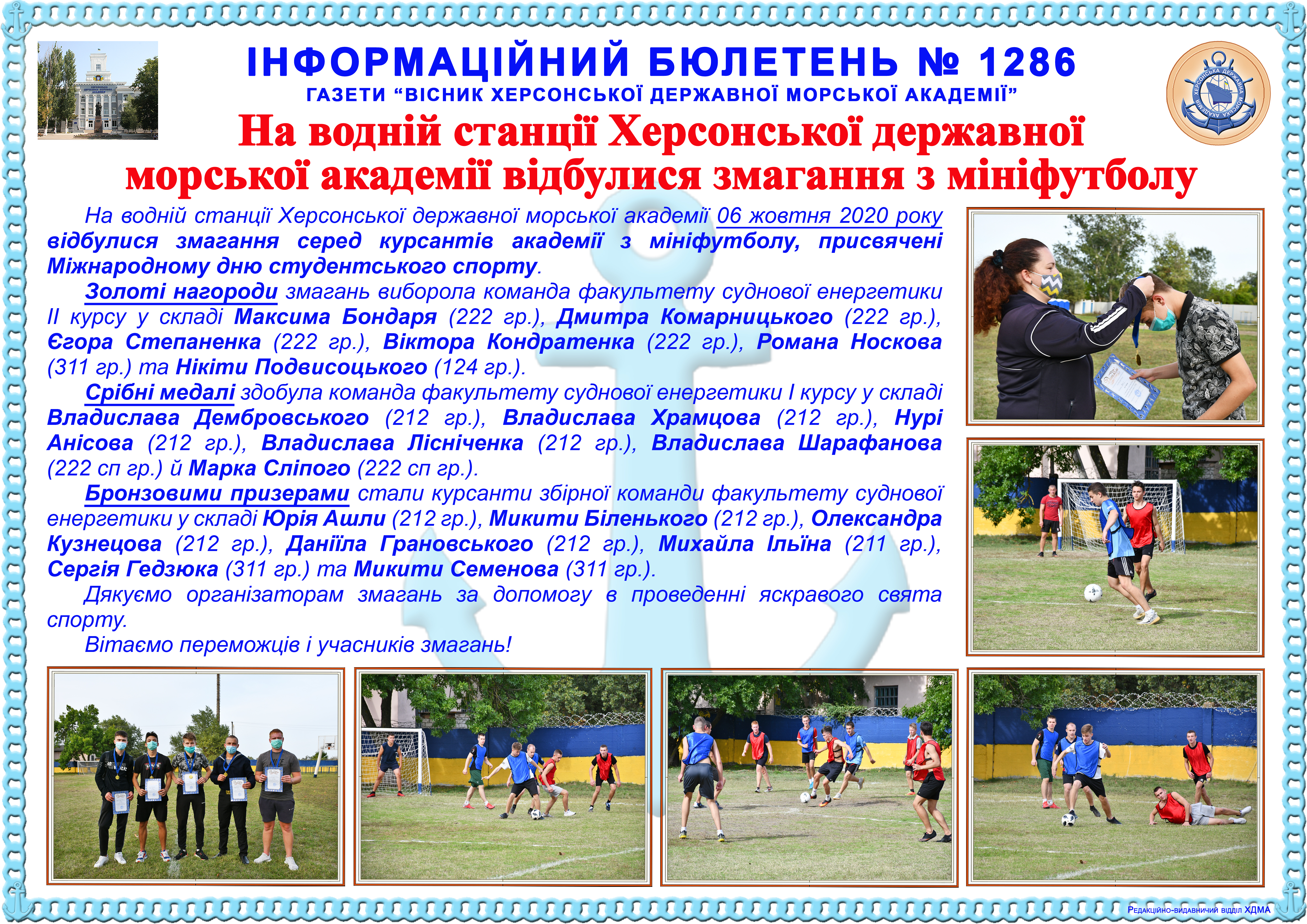 Інформаційний бюлетень № 1286 На водній станції Херсонської державної морської академії відбулися змагання з мініфутболу