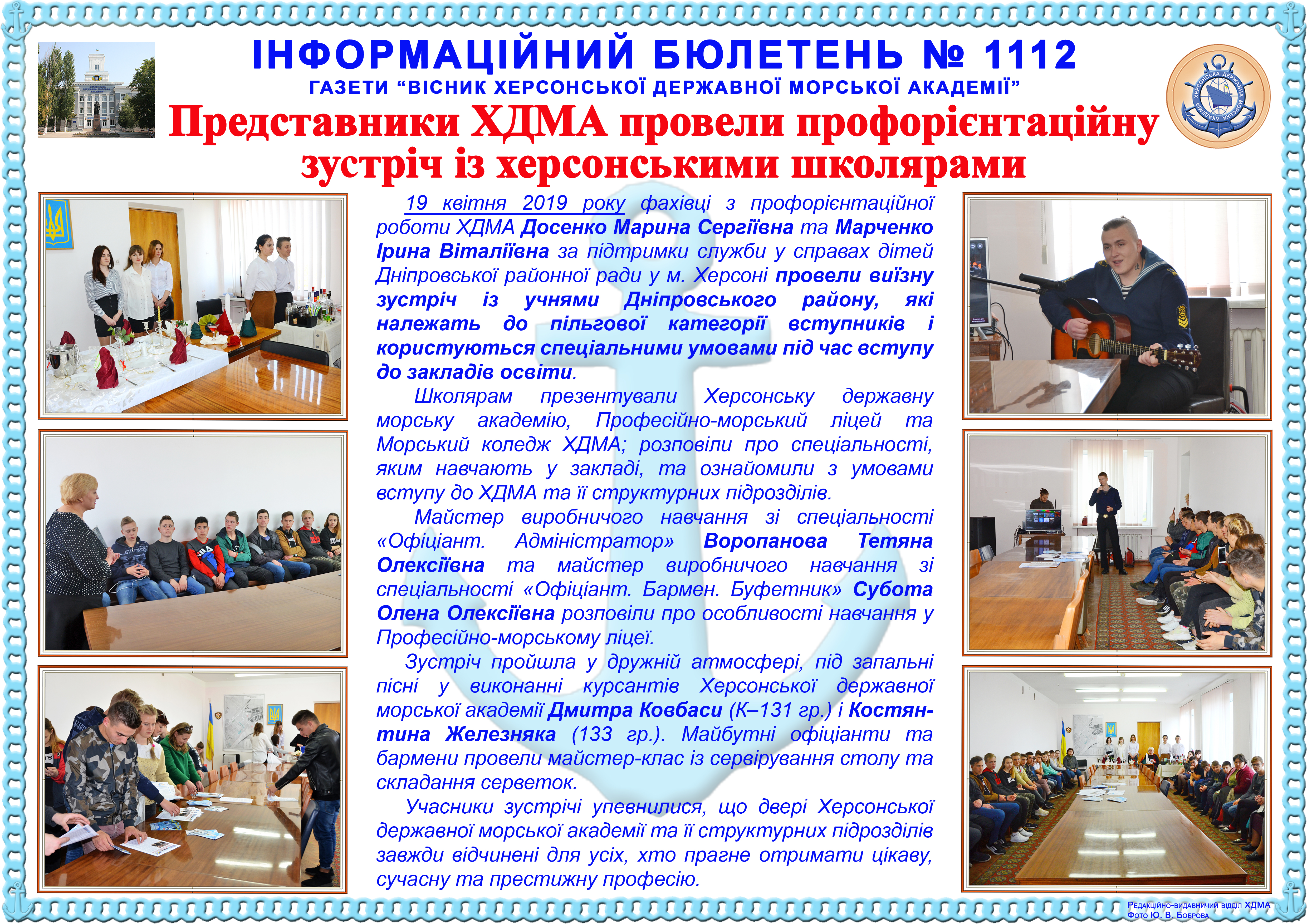 Інформаційний бюлетень № 1112 Представники ХДМА провели профорієнтаційну зустріч із херсонськими школярами