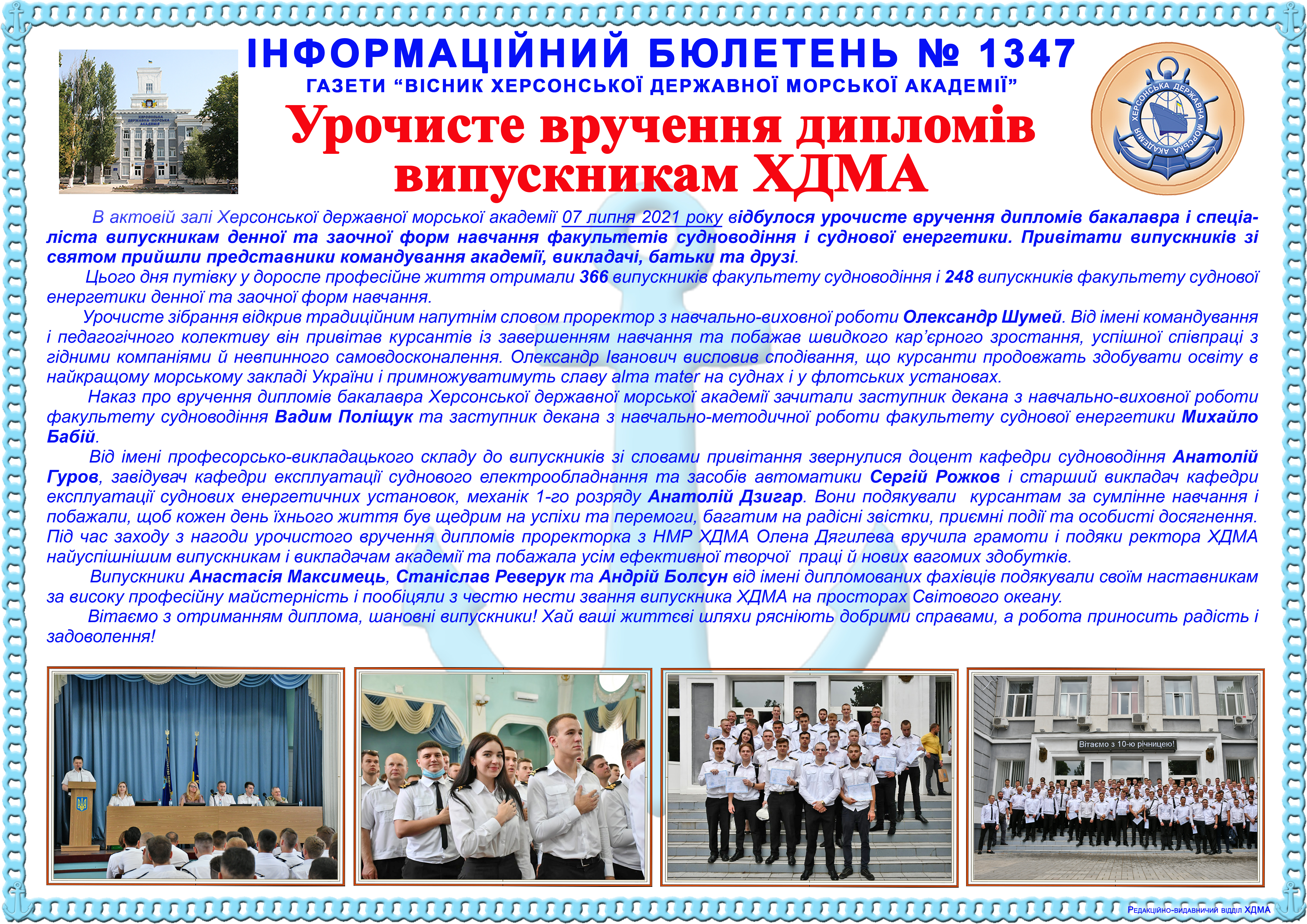 Інформаційний бюлетень № 1347 Урочисте вручення дипломів випускникам ХДМА