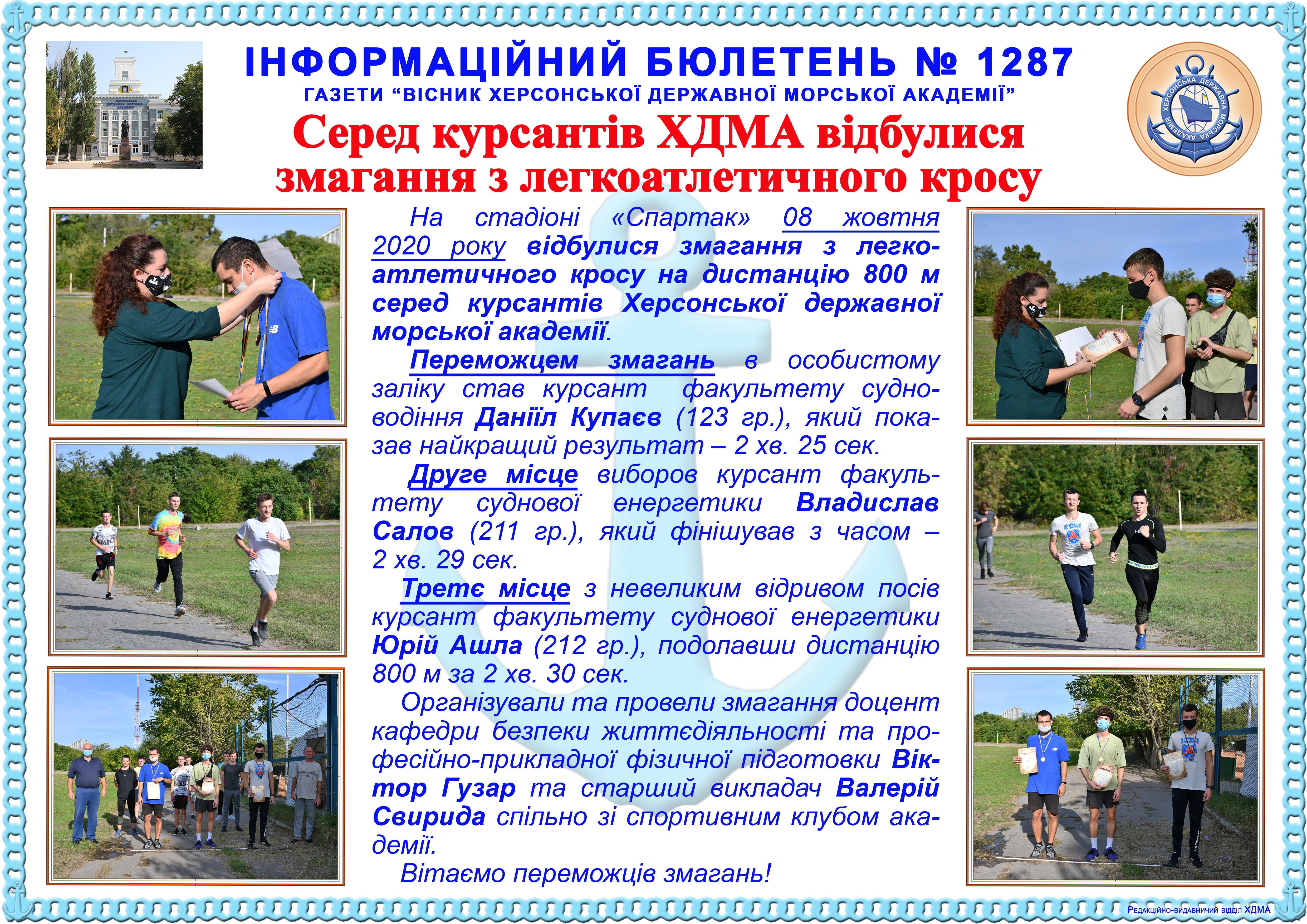 Інформаційний бюлетень № 1287 Серед курсантів Херсонської державної морської академії відбулися змагання з легкоатлетичного кросу
