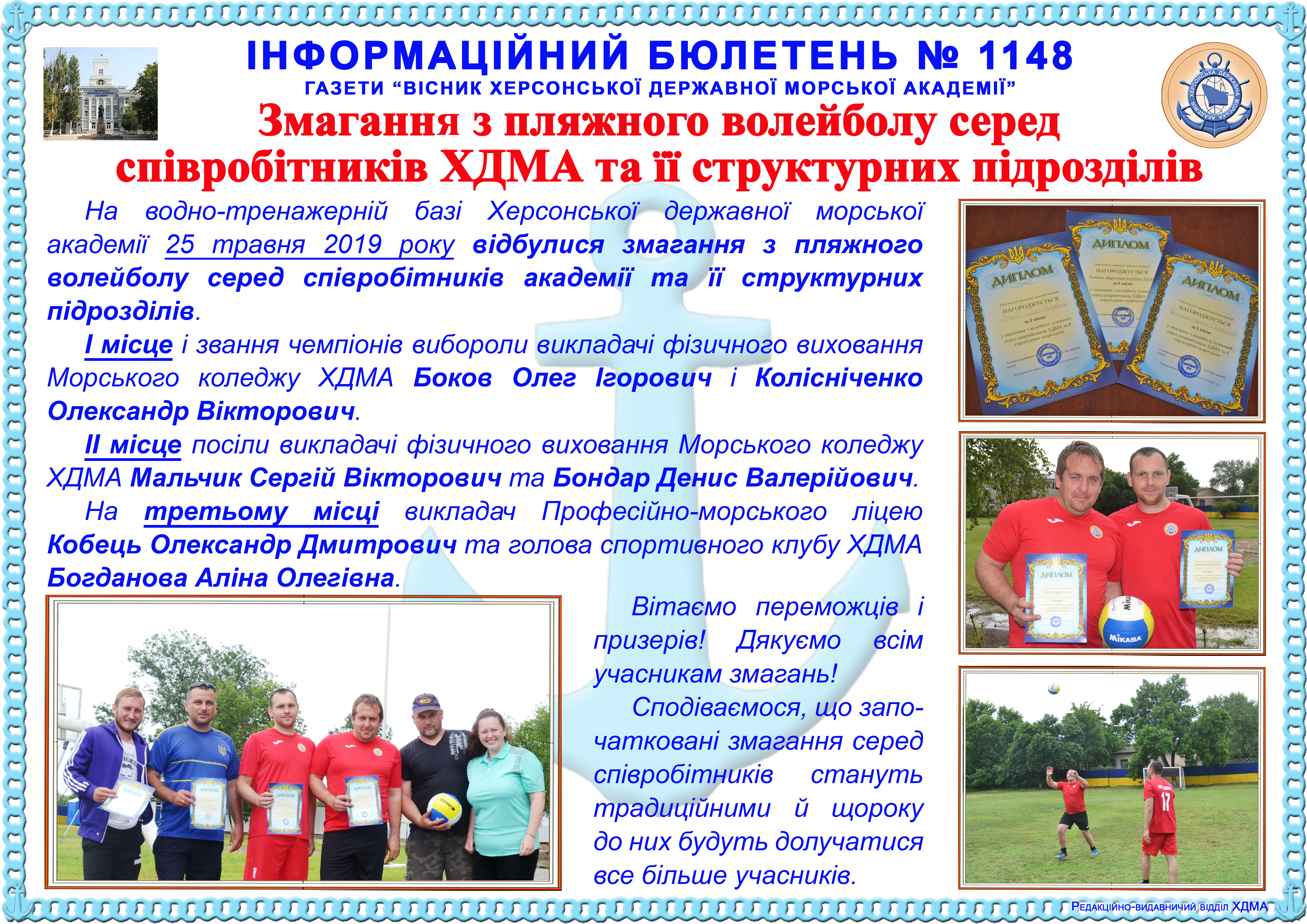 Інформаційний бюлетень № 1148 Змагання з пляжного волейболу серед співробітників ХДМА та її структурних підрозділів