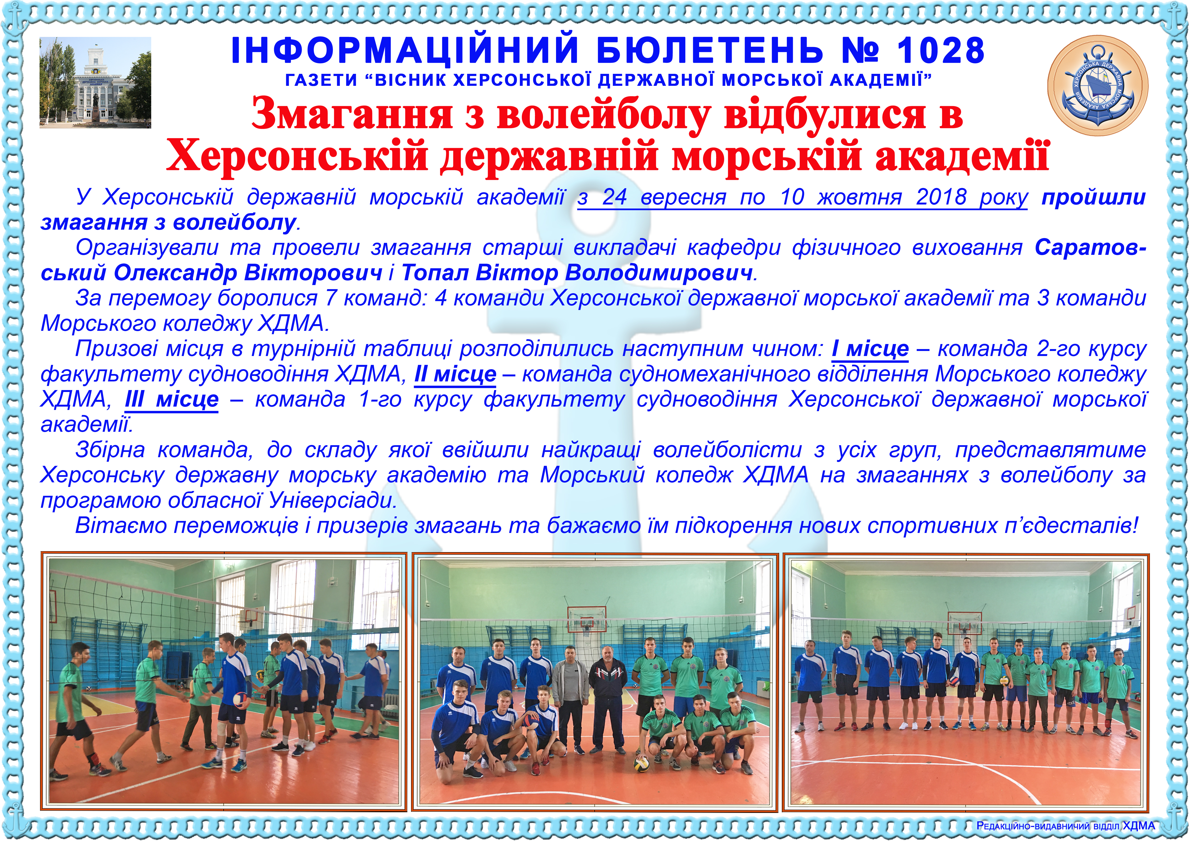 Інформаційний бюлетень № 1028 Змагання з волейболу відбулися в Херсонській державній морській академії