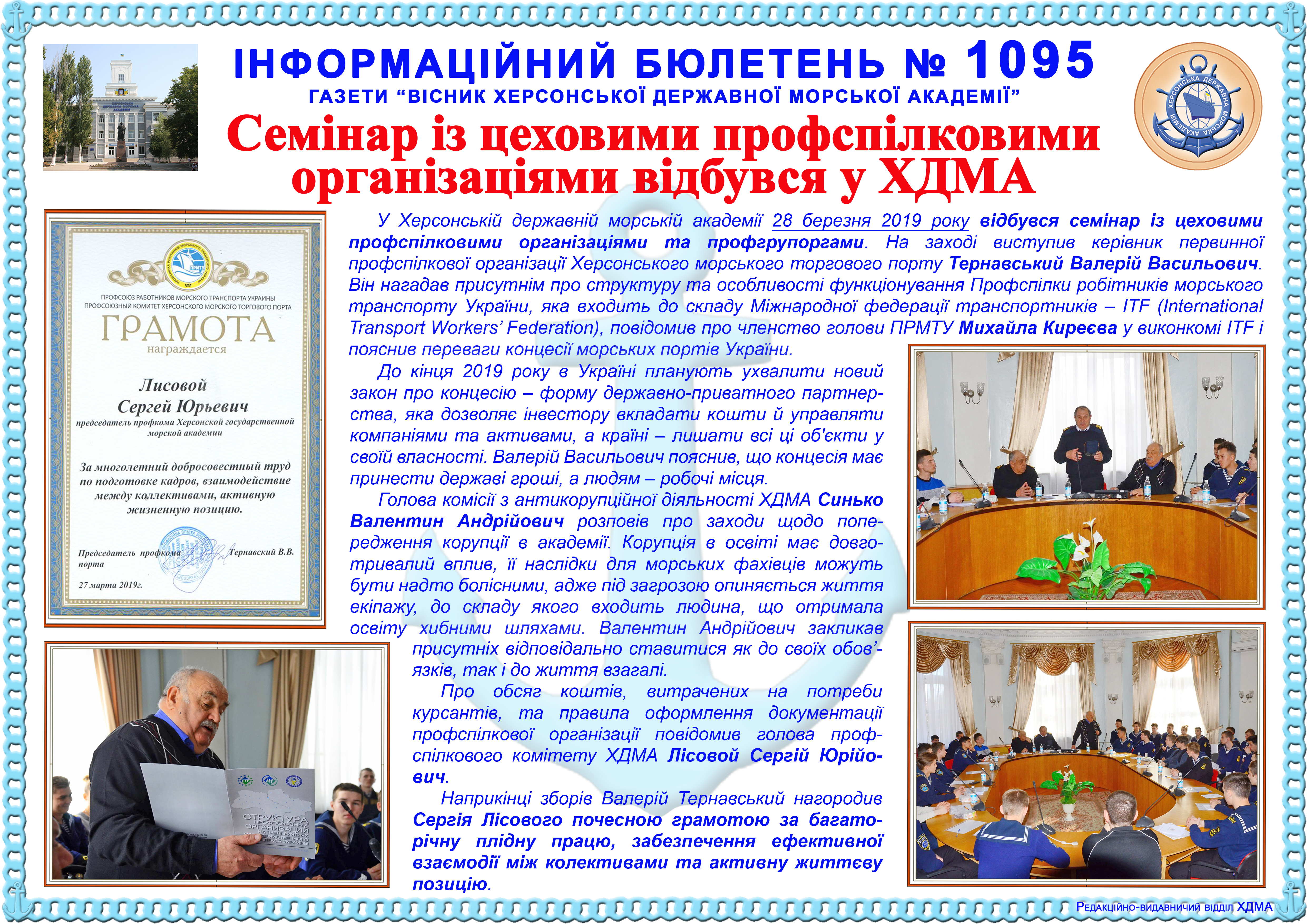 Інформаційний бюлетень № 1095 Семінар із цеховими профспілковими організаціями відбувся у ХДМА