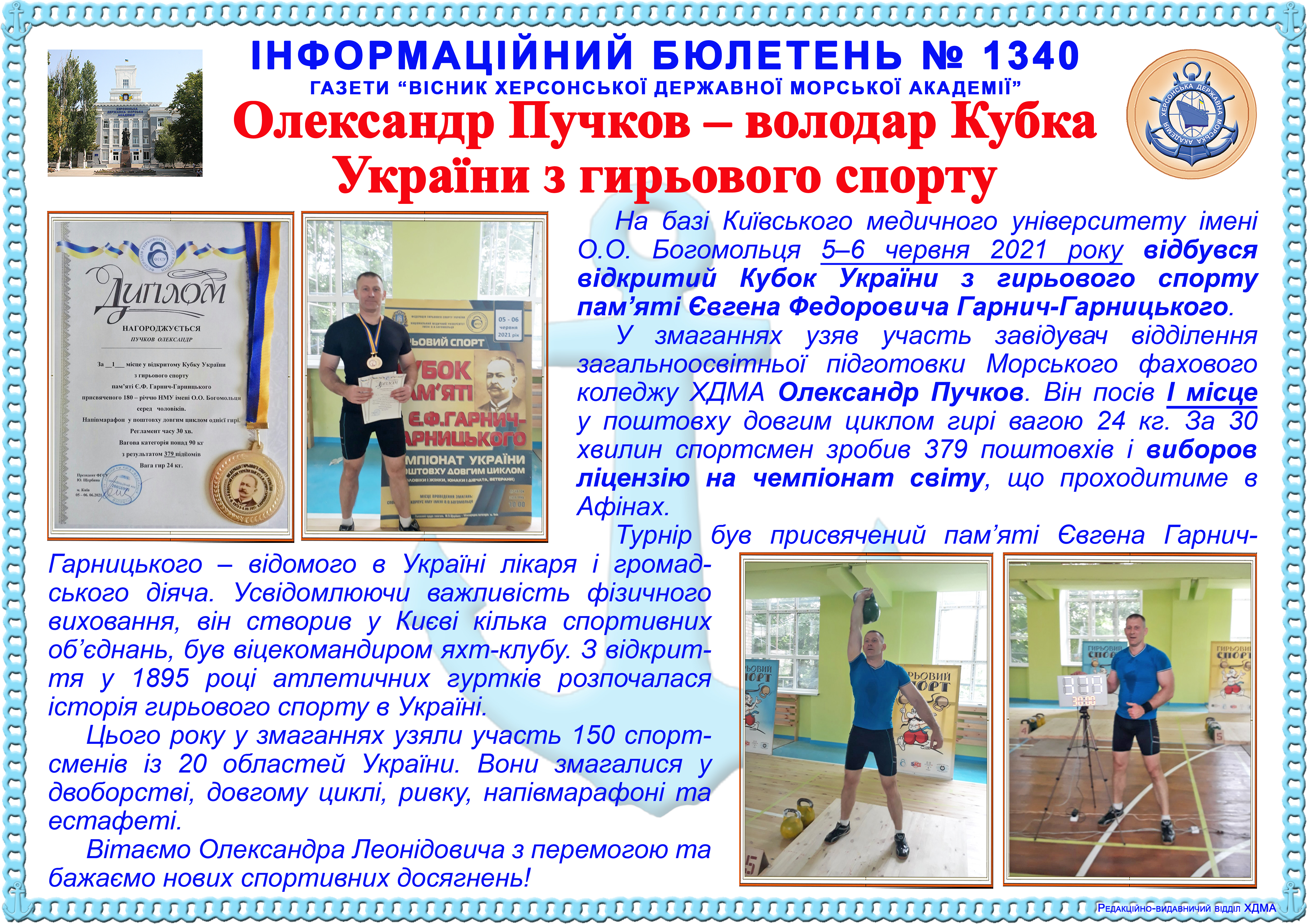 Інформаційний бюлетень № 1340 Олександр Пучков – володар Кубка України з гирьового спорту