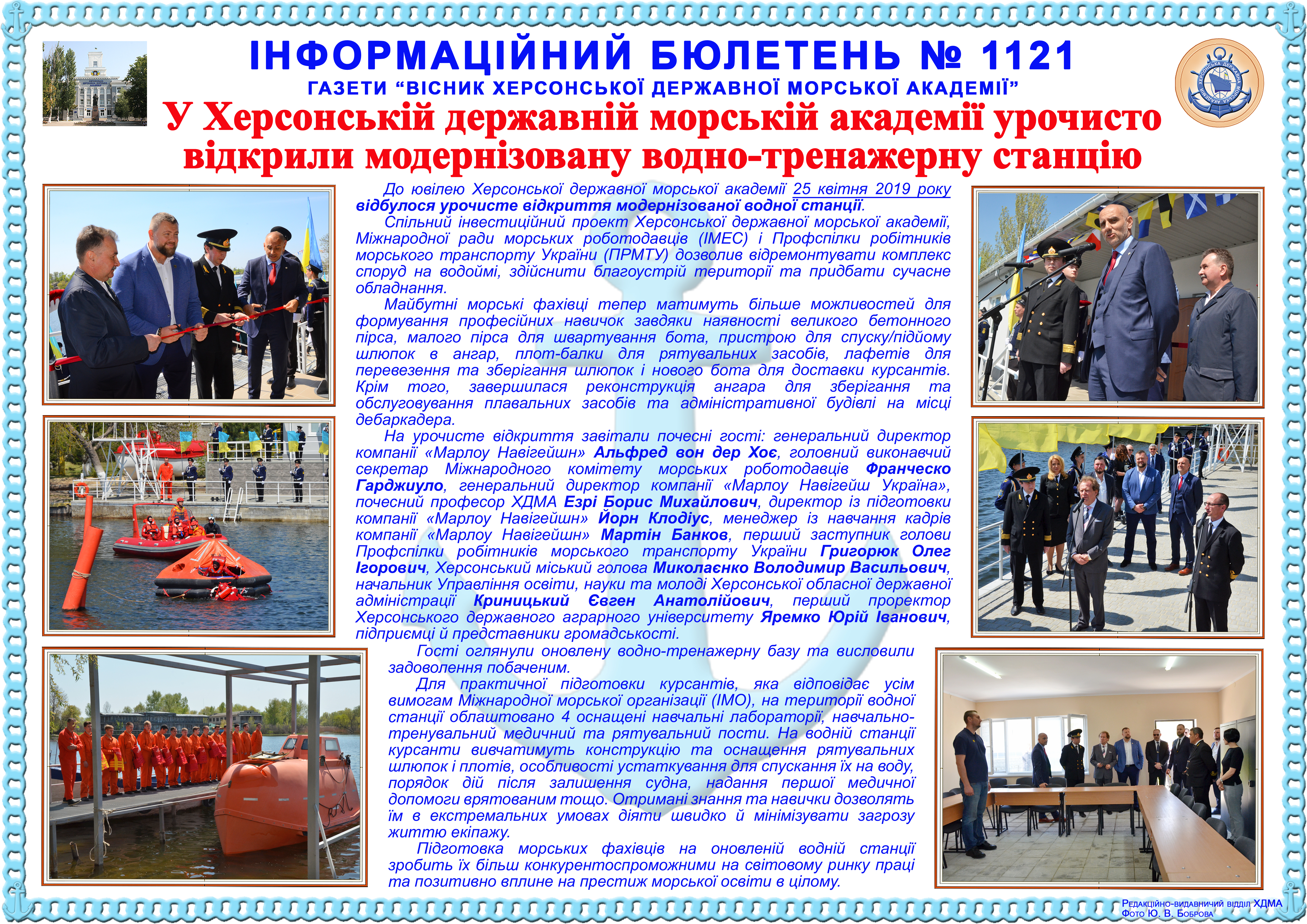 Інформаційний бюлетень № 1121 У Херсонській державній морській академії урочисто відкрили модернізовану водно-тренажерну станцію