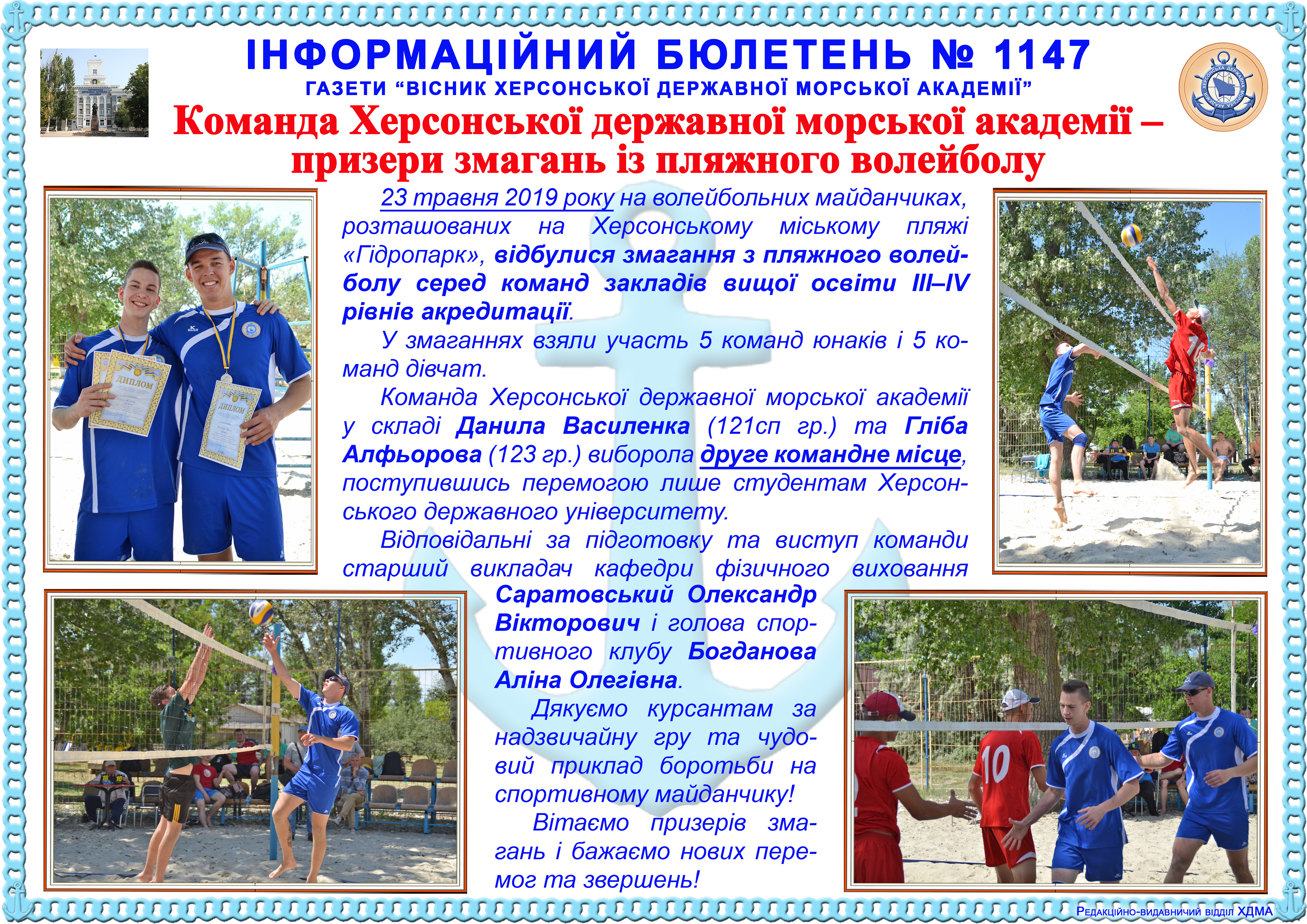 Інформаційний бюлетень № 1147 Команда Херсонської державної морської академії – призери змагань із пляжного волейболу